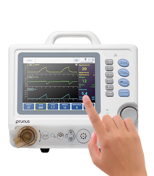 Prunus's patented DualPAP® (Dual Level Positive Pressure Ventilation) mode provides positive pressure ventilation to patients at two levels of pressure (high pressure phase and low pressure phase), with pressure support (PS) set at both pressure levels, exercising the patient's respiratory function and reducing dependence on the ventilator.