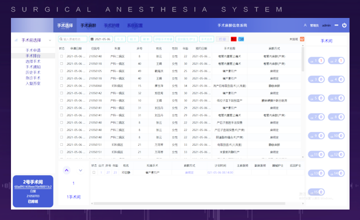 易用高效的模塊:將麻醉圍術(shù)期所有的醫(yī)療文書進(jìn)行電子化,信息化,可優(yōu)化麻醉工作環(huán)節(jié),實(shí)現(xiàn)患者信息共享,自動(dòng)讀取患者信息、羅列手術(shù)患者,批量排臺(tái),排班完成后形成手術(shù)相關(guān)通知信息,支持歷史手術(shù)查詢,大大提升醫(yī)務(wù)人員工作效率,據(jù)測(cè)算平均提升40%的工作效率